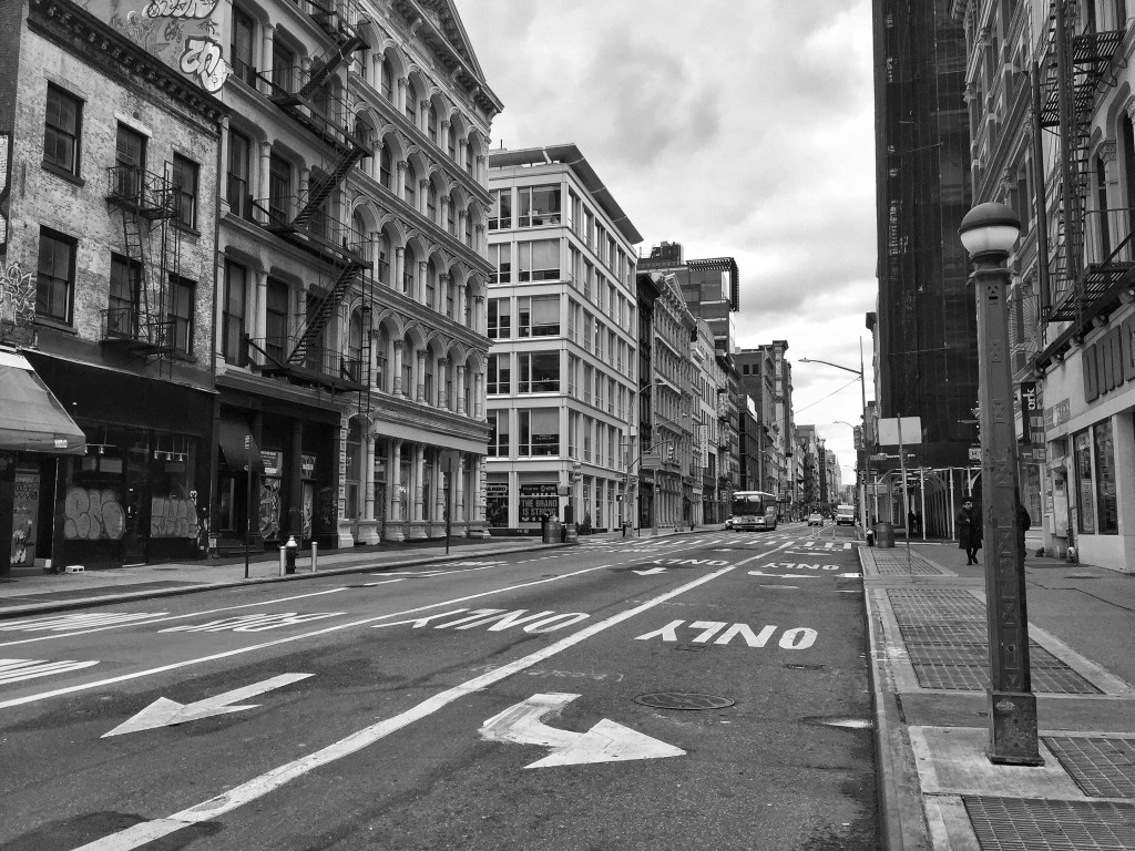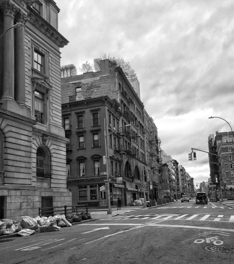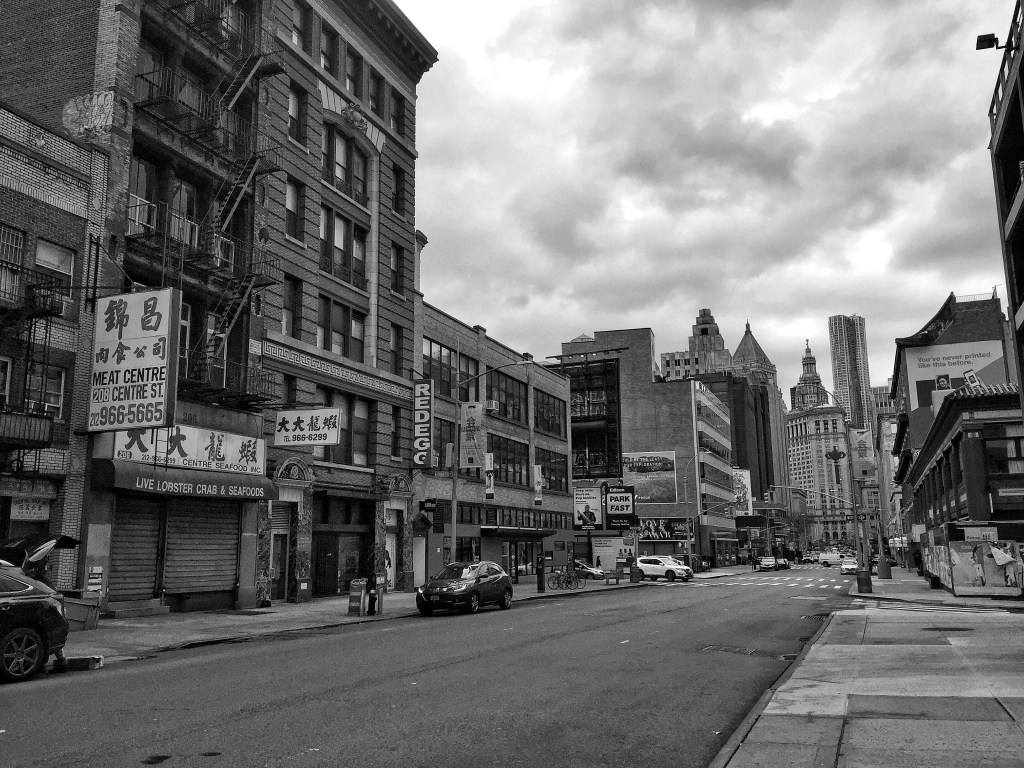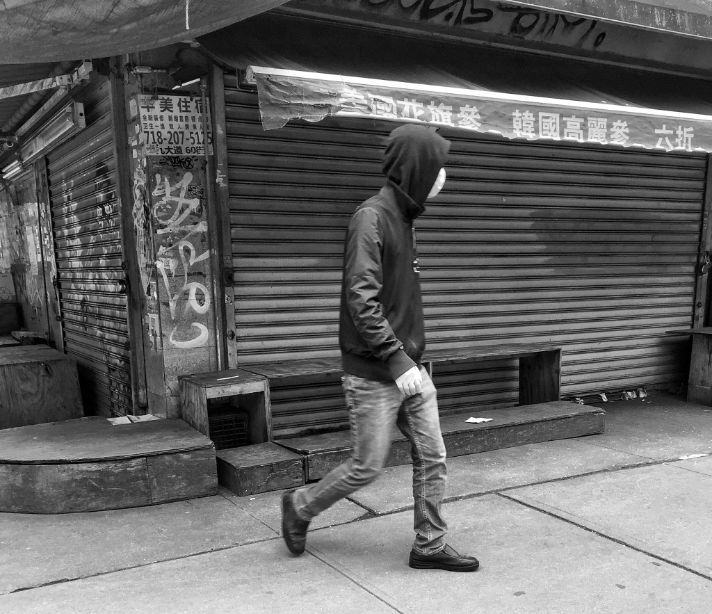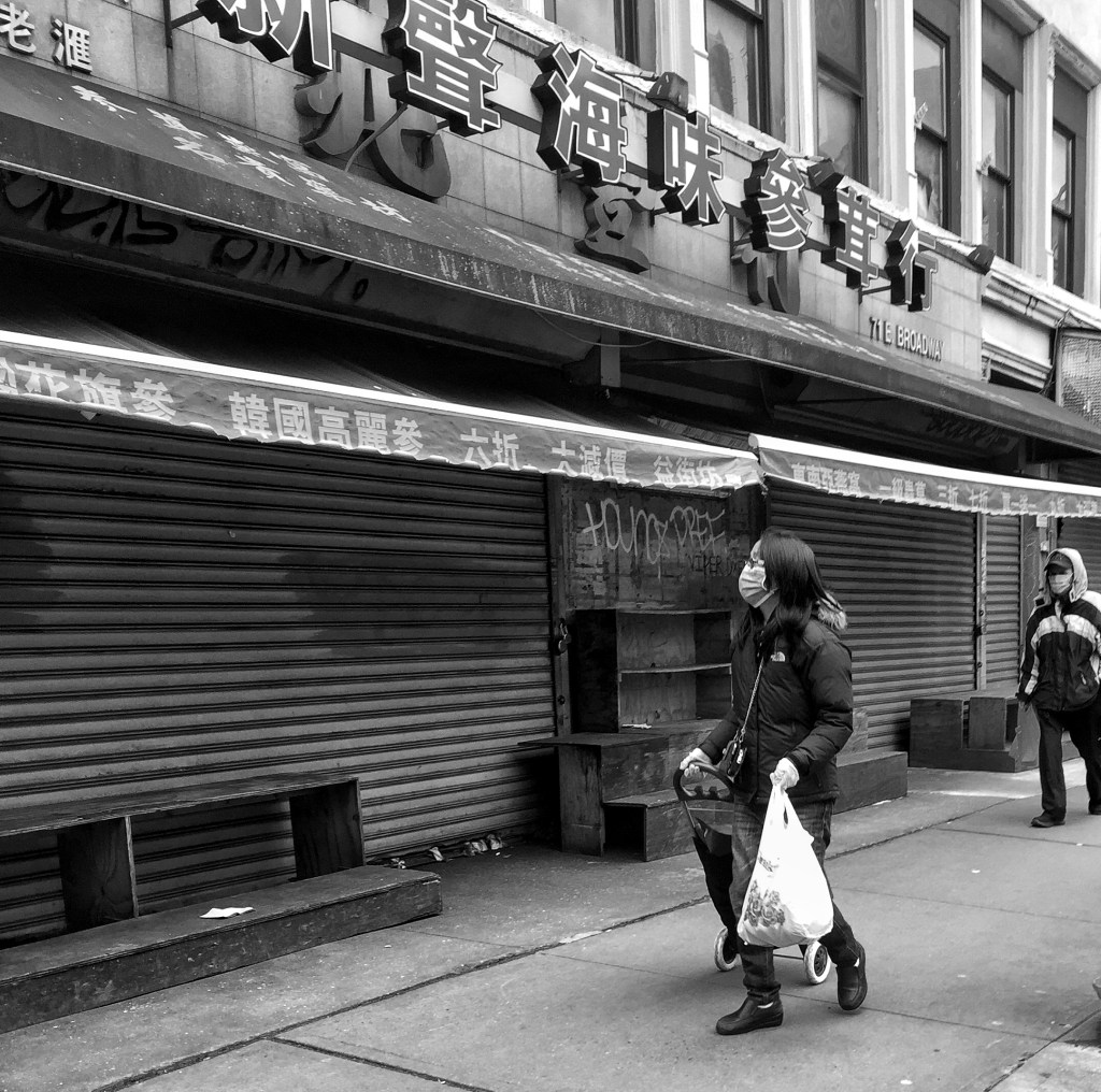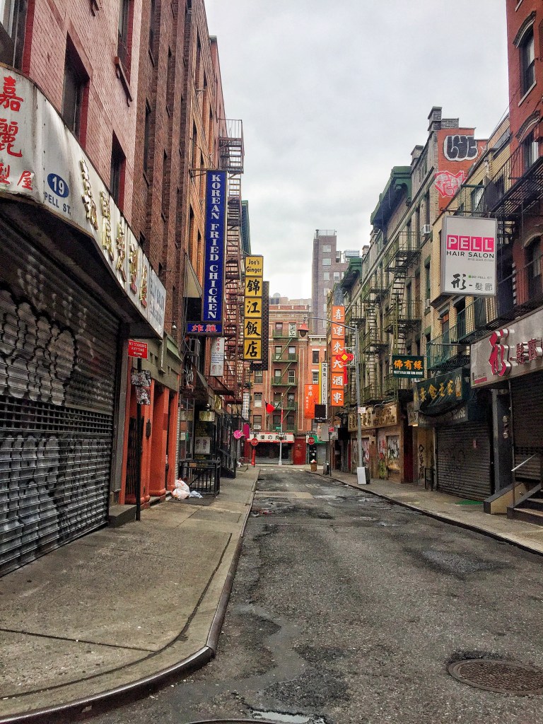 This collection of images was shot at the end of March 2020, just as NYC lockdown started cracking down in earnest. I made a trek from Astoria to Chinatown for a photo shoot, all the while convinced Covid would find and kill me and worrying I’d end up a martyr with nothing to show for myself but an iCloud full of empty streets. Witnessing an empty Canal Street in the middle of the day was mind-blowing. A silent Chinatown, except for a few delivery drivers quietly buzzing up and down the abandoned streets on bicycles and mopeds. So quiet you could hear your voice echo. Flocks of pigeons in the streets. Zero cars on the RFK Bridge. The silence haunts me still.