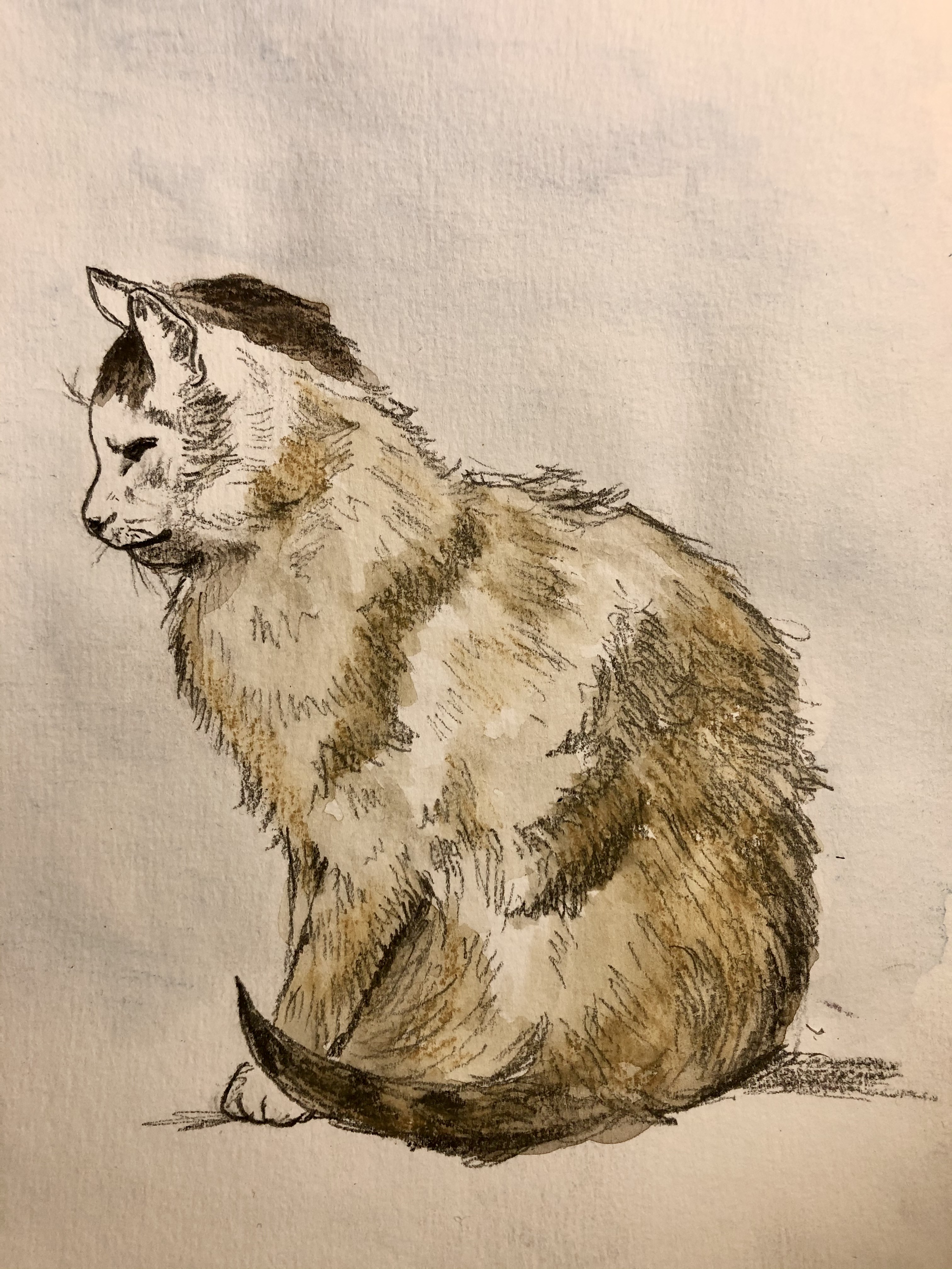 I use graphite, watercolour, pen and ink, and traditional painting media.